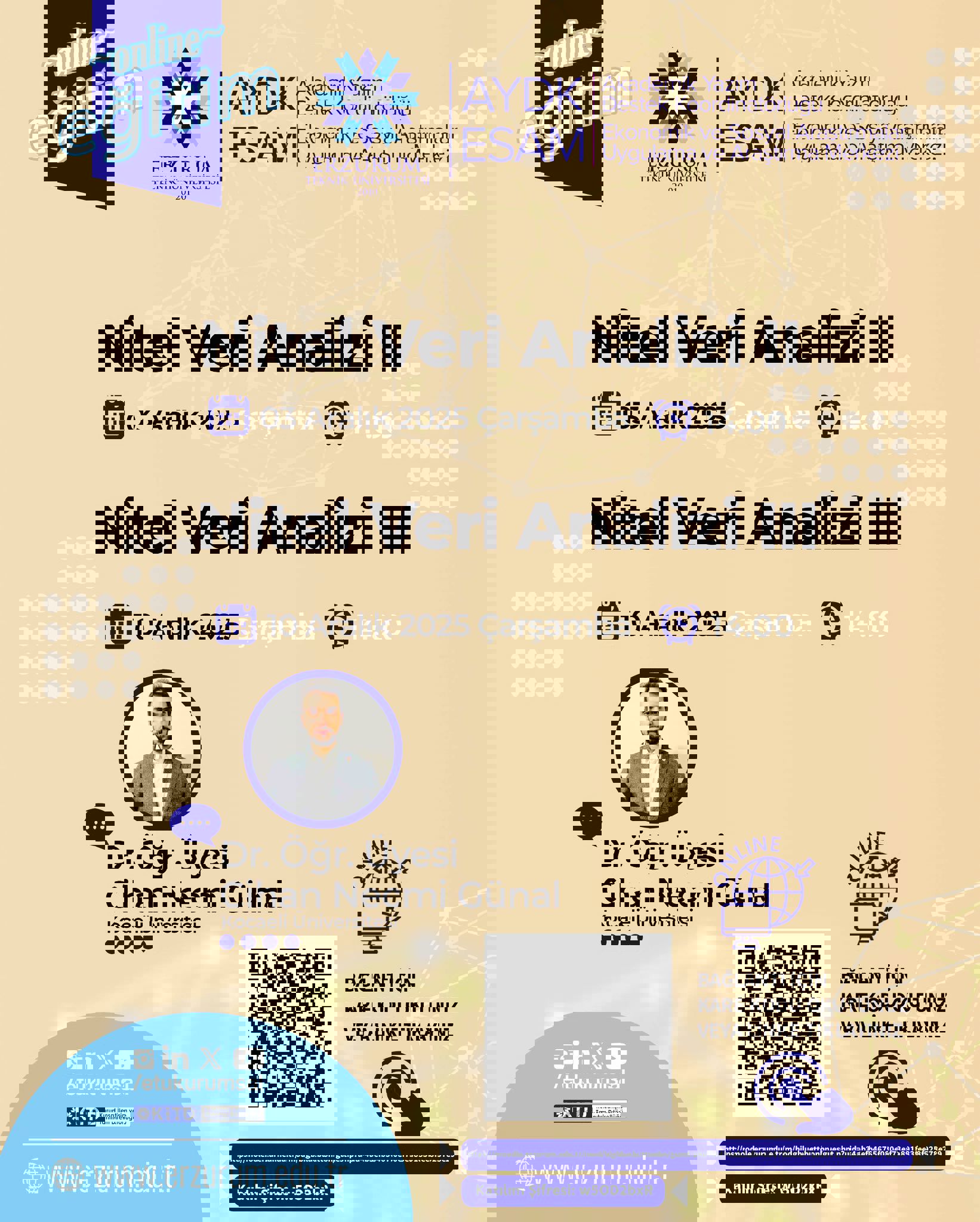 Nitel Veri Analizi Eğitim Serisinin II. ve III. oturumlarıda sırasıyla 03 Aralık Çarşamba günü saat 14.00’te ve 10 Aralık Çarşamba günü saat 14.00’te gerçekleştirilecektir.