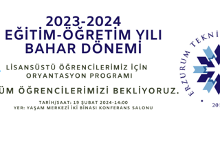 19 Şubat 2024 Pazartesi günü Saat:14.00'te Yaşam Merkezi 2 Binası Konferans Salonunda gerçekleştirilecek Oryantasyon Programına hepiniz davetlisiniz.