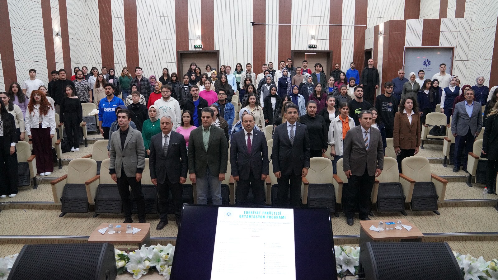 Edebiyat Fakültesine yeni kayıt yaptıran birinci sınıf öğrencilerine yönelik oryantasyon programı yapıldı. Erzurum Teknik Üniversitesi Rektörü Prof. Dr. Bülent Çakmak, Rektör Yardımcıları Prof. Dr. Naim Ürkmez ve Prof. Dr. Ali Fatih Yetim’in katılımıyla gerçekleştirilen programda öğrencilere mevzuat ve Üniversitenin sağladığı imkânlara ilişkin bilgiler verildi.