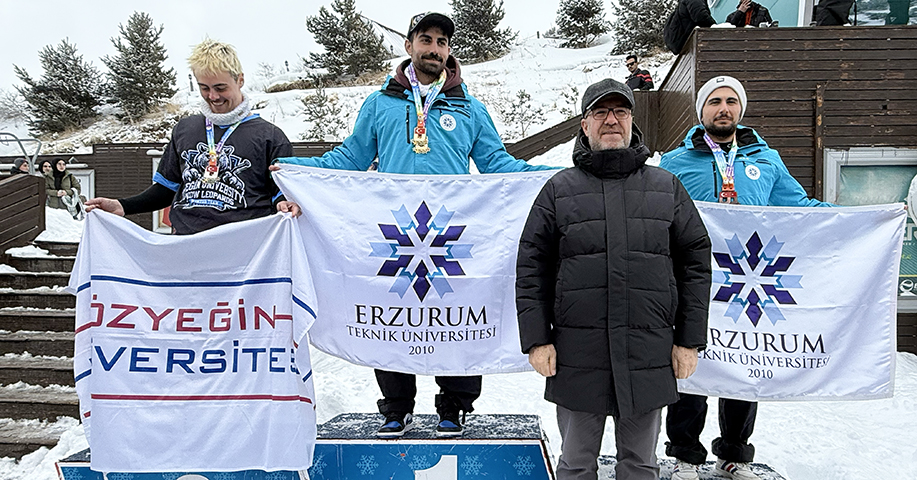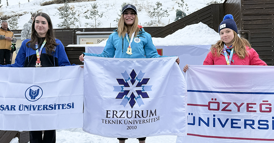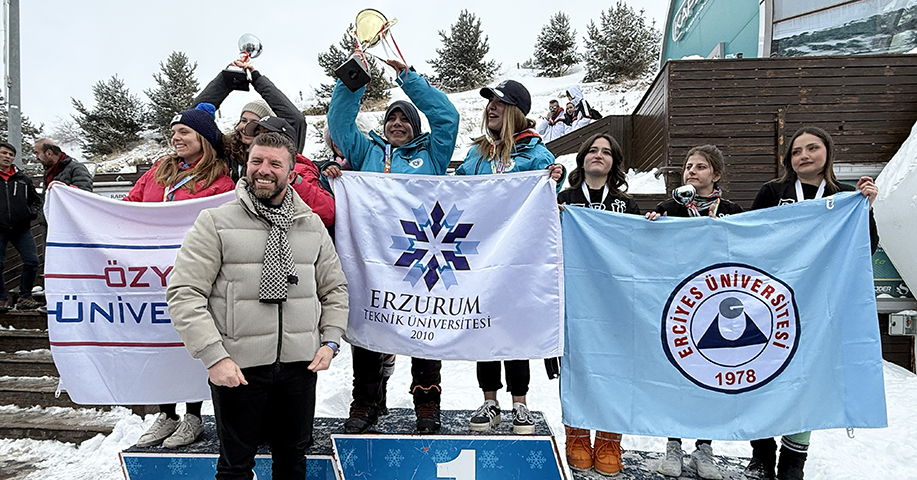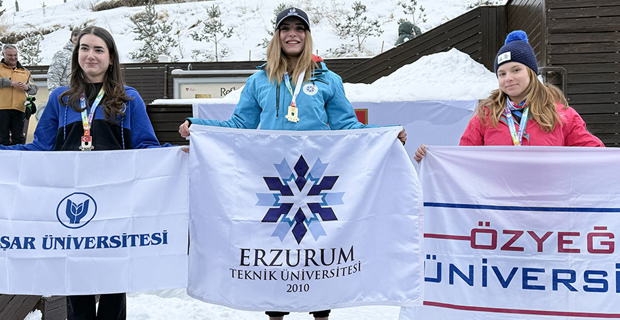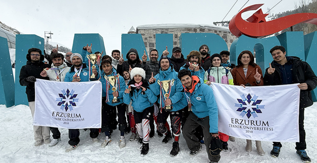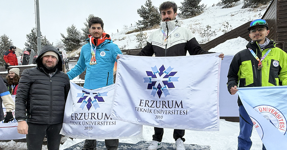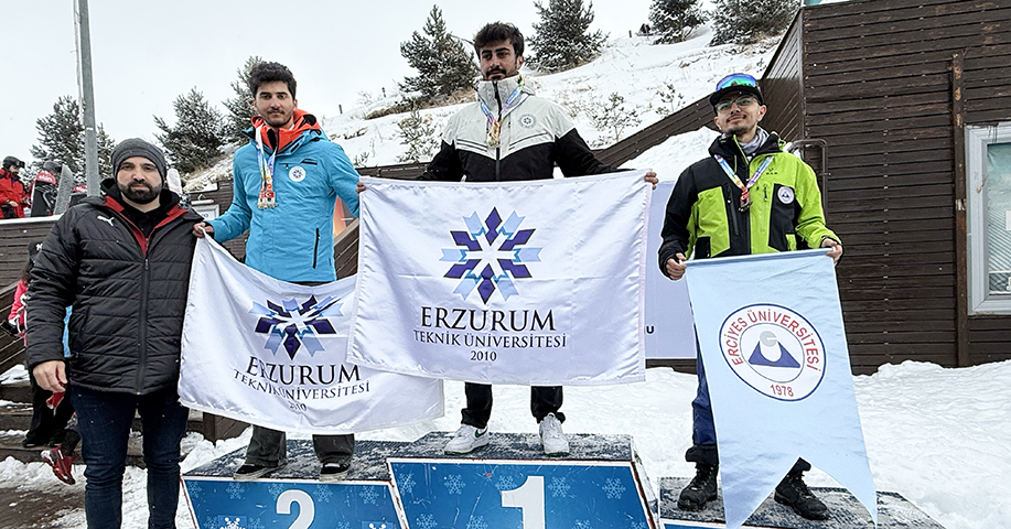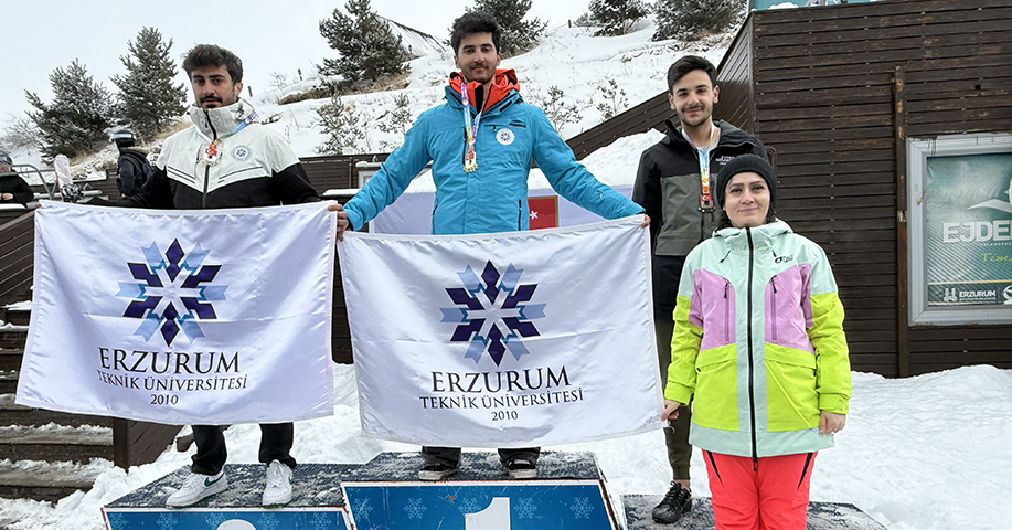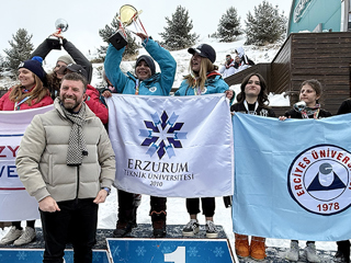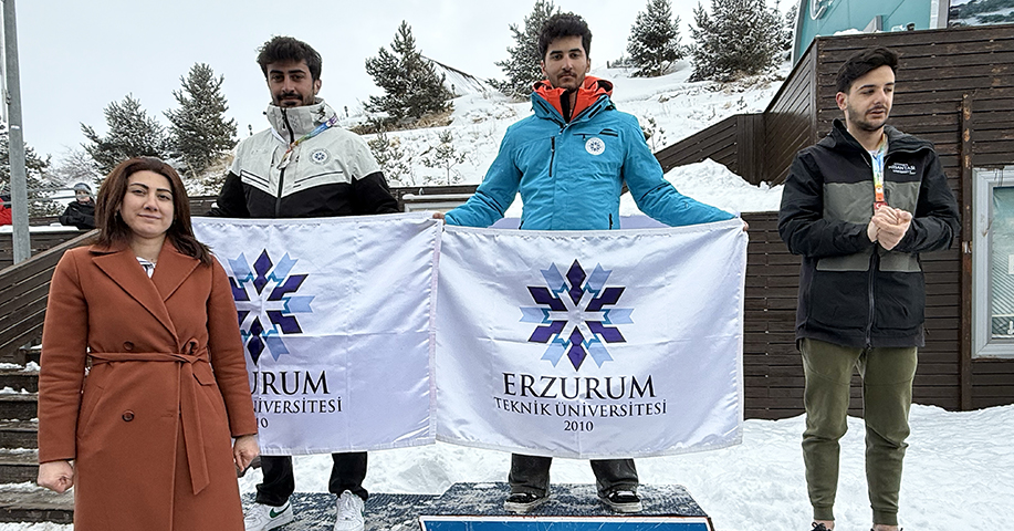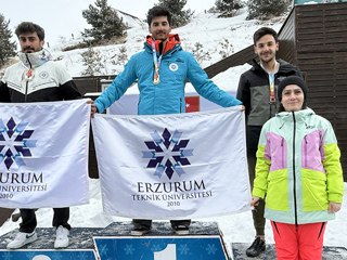Erzurum Technical University (ETU) left its mark by winning 3 first place cups, 6 gold, 2 silver and 2 bronze medals in the Alpine Skiing and Snowboarding Turkey Championships at the Winter Sports Games organized by the Turkish University Sports Federation.