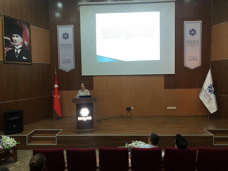 Within the scope of the Activity of the Week, a conference "Industrial Applications of Probiotics" organized by Gene Actuel Club was held in the conference hall of our faculty. The vice-dean of our faculty Assoc. Prof. Serkan ORTUCU, the head of Molecular Biology and Genetics Assoc. Prof. Omer Faruk KARATAS, our academicians, and students attended the conference presented by Prof. Dr. Neslihan DIKBAS from Ataturk University.