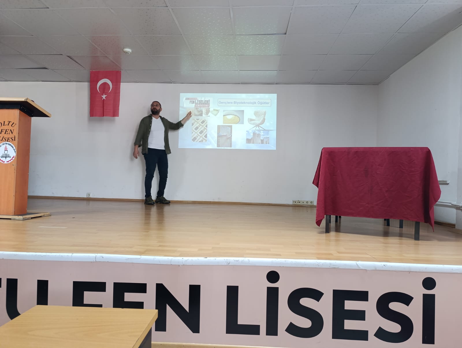 Fakültemiz Moleküler Biyoloji ve Genetik Bölümü öğretim üyelerinden Prof. Dr. Serkan ÖRTÜCÜ tarafından Oltu Fen Lisesi ve Oltu Anadolu Lisesi öğrencilerine "Gençlere Biyoteknolojik Öğütler" konulu konferans verildi.