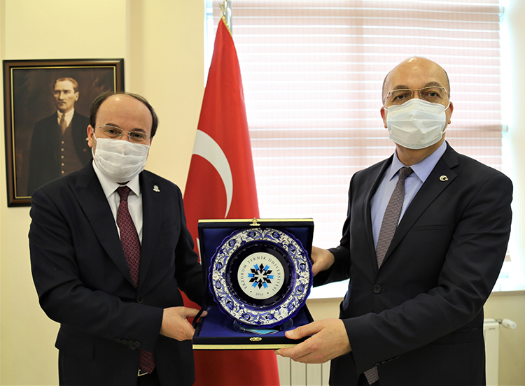 The President of Erzurum Technical University (ETU) Prof. Dr. Bülent Çakmak paid a courtesy visit to the President of Gümüşhane University Prof. Dr. Halil İbrahim Zeybek. President Bülent Çakmak was accompanied by Vice-Presidents Prof. Dr. Murat Küçükuğurlu and Prof. Dr. Birol Soysal.