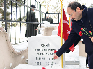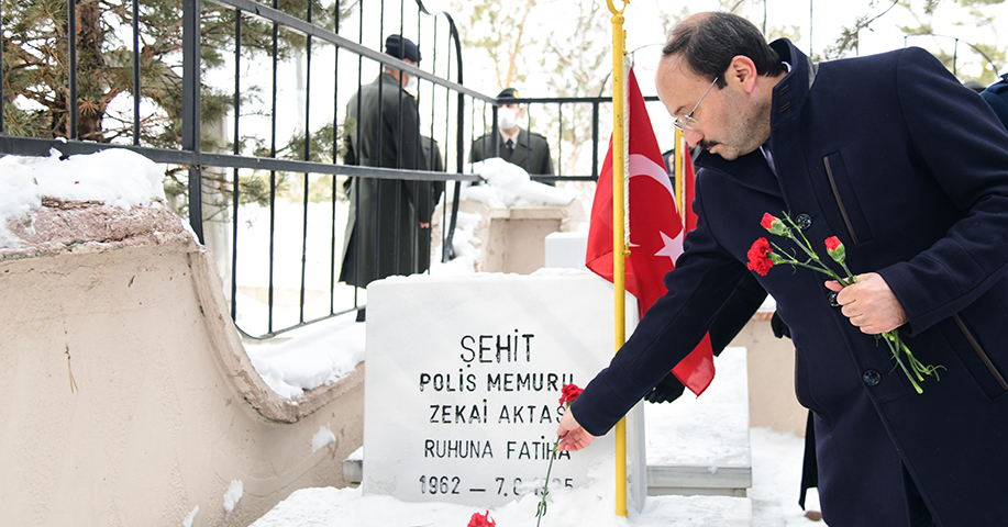 Kars Kapı Şehitliğine çelenk sunumuyla başlayan tören saygı duruşu ve İstiklal Marşı’nın okunmasının ardından günün anlam ve önemini anlatan şiirlerle devam etti. Daha sonra Polis Şehitliği ziyaret edilerek, aziz şehitlerimizin kabrine karanfil bırakıldı.