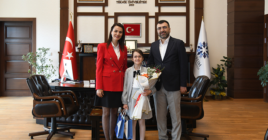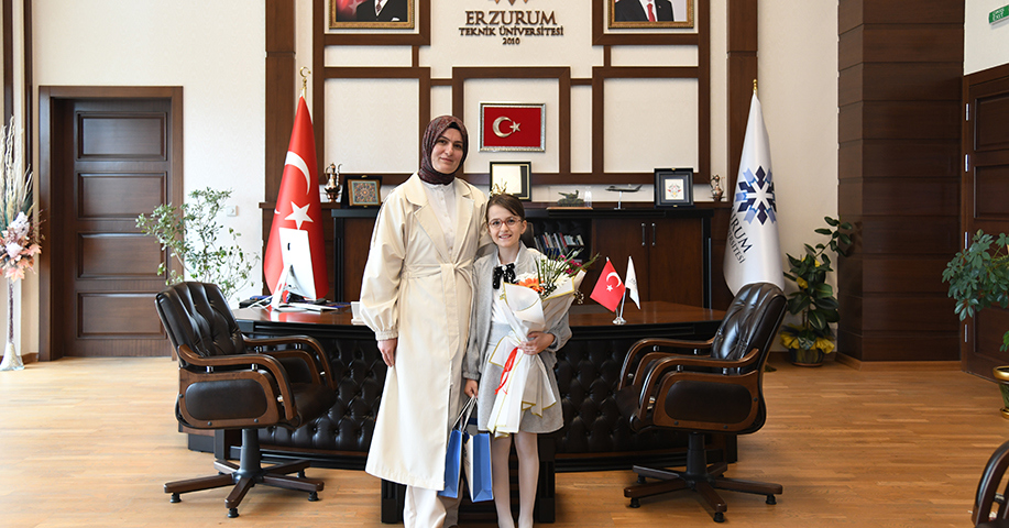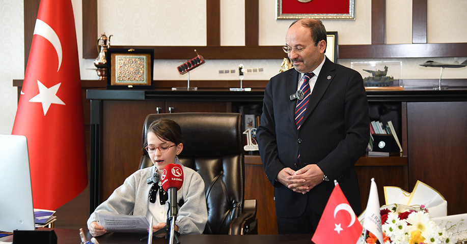 Erzurum Teknik Üniversitesi (ETÜ) Rektörü Prof. Dr. Bülent Çakmak, 23 Nisan Ulusal Egemenlik ve Çocuk Bayramı dolayısıyla Rektörlük Makamını temsili olarak ilkokul öğrencisi Asya Mina Bindesen’e devretti.