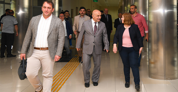 Rector Çakmak, who took his guests around the campus after the presentation at the Rectorate, thanked the teachers for their devoted work during this process and conveyed his wishes for success.