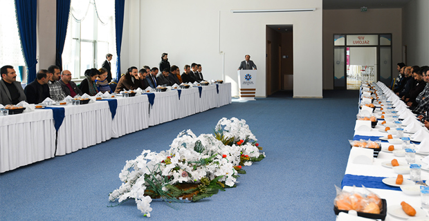 Programda konuşan Rektör Çakmak, arama kurtarma ekibinde bulunan ekiple birlikte sohbet etmek ve hatıraları paylaşmak amacıyla buluştuklarını ifade ederek: “Ülkemiz 12 gün kadar önce malumunuz deprem felaketiyle yüzleşti. Yüzyılın felaketi olarak ifade edilen bu depremde çok sayıda canımızı kaybettik. Değerli arkadaşlar buradan depremin olduğu gün sabahın erken saatlerinde bir ekip çıkarabilir miyiz şeklinde konuştuk. İstişare ettik sonrasında arkadaşlarımıza duyurduk. Başlangıçta binek araçlarda 3-5 arkadaşımız belki çıkar belki çıkmaz diye düşünürken üniversitemizden yüce gönüllü 27 mesai arkadaşımız gönüllü oldular ve biz deprem alanına gideceğiz dediler. Ardından Erzurum AFAD Koordinasyon Merkezi’ne intikal ettik ve orada da yine bizlere eşlik eden öğretmen arkadaşlarımız oldu ve şu an onlar da buradalar ve kendilerine de hassaten teşekkür ediyorum. Gönüllü kurtarma ekibimiz Hatay’a ilk ulaşan ekiplerden biri oldu ve taşın altına elini değil gövdesini koyarak afetten etkilenen vatandaşlarımızın yardımına koştular. Bu kelimelerle ifade edilemeyecek kadar kutsal bir iş. Bu vesileyle gönüllülük seferberliğine katılan arkadaşlara tekrar gönülden teşekkür ediyorum. İyi ki varsınız sağ olun var olun” diye konuştu.