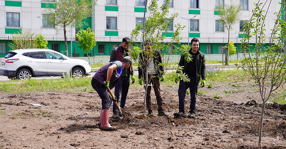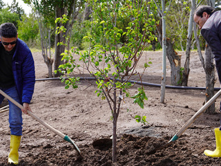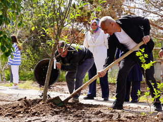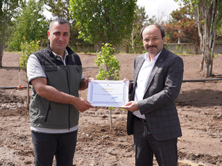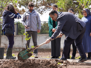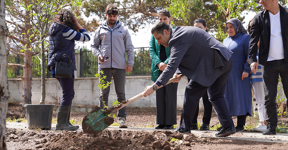 Kahvaltı programının ardından, geleneksel hâle gelen fidan dikim etkinliği gerçekleştirildi. Rektör Çakmak ve beraberindekiler üniversite kampüsünde çok sayıda meyve fidanını toprakla buluşturdu.