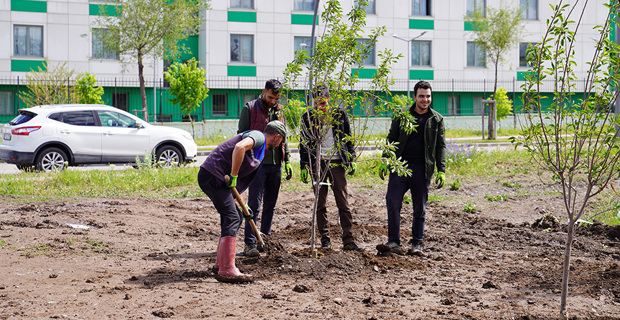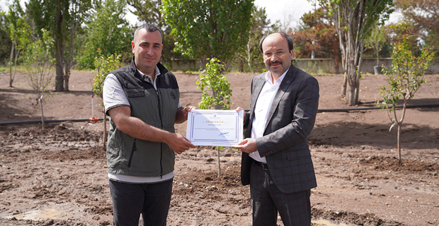Following the breakfast program, the traditional sapling planting event was held. Rector Çakmak and his entourage planted many fruit saplings on the university campus.