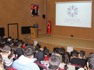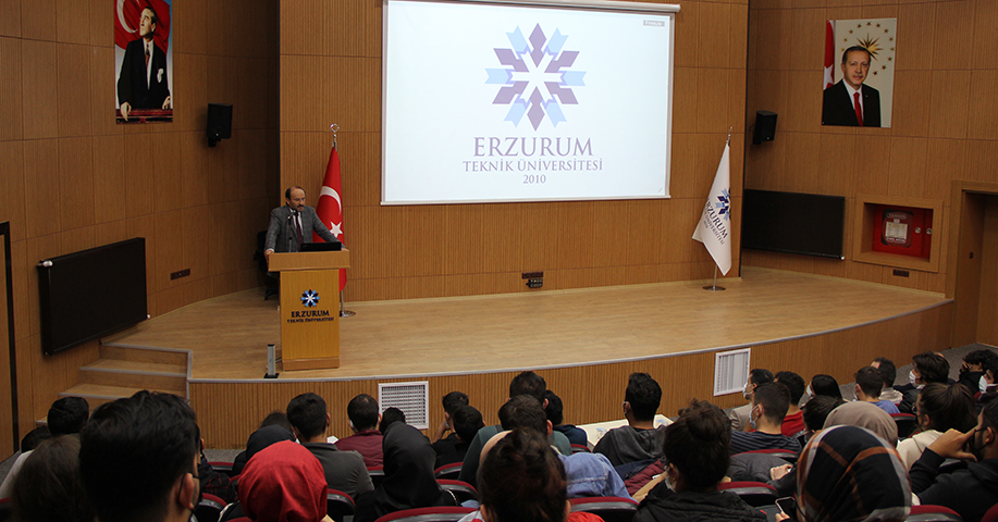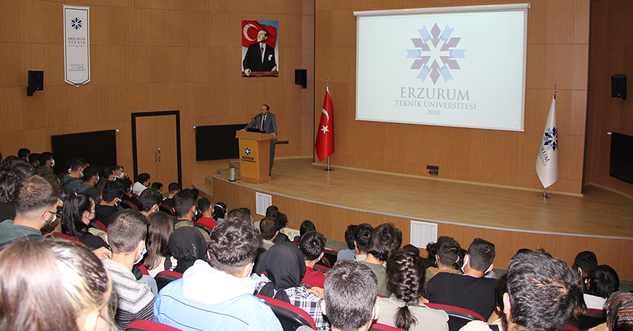 Erzurum Teknik Üniversitesi (ETÜ) Rektörü Prof. Dr. Bülent Çakmak, ETÜ’yü tercih ederek 2021-2022 akademik yılında öğrenim görmeye başlayan Mühendislik ve Mimarlık Fakültesi 1. sınıf öğrencileriyle bir araya geldi.