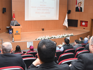 Rector Çakmak, who came to the podium to make the opening speech of the program, stated that the number of projects and patent applications increased each year: “Coming together with our professors, who are the owners of the public and private sector supported projects they have prepared in 2022, they both congratulate themselves and evaluate the next process together and increase these numbers. We wanted to consult on the steps that need to be taken to pull it up. Of course, first of all, I would like to express that; The studies carried out are very valuable both in terms of your own career and in terms of the awareness of our university. We caught a rising trend in 2022. As a matter of fact, 5 of our 1001 Projects, 10 of our 1002 Rapid Support Projects and 2 of our 3501 Career Projects were supported. Considering the number of our faculty members, this situation can be evaluated as a relatively good percentage compared to many universities. With your efforts, we will spread the project culture throughout our university and we will ensure that these numbers increase much higher”.
