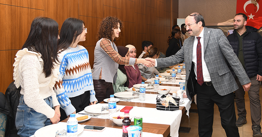 Erzurum Teknik Üniversitesi (ETÜ) Rektörü Prof. Dr. Bülent Çakmak üniversitede öğrenim gören uluslararası öğrencilerle öğle yemeğinde bir araya geldi.