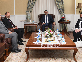 Erzurum Teknik Üniversitesi (ETÜ) Rektörü Prof. Dr. Bülent Çakmak ve yönetimi Valiler Kararnamesi ile Çorum Valiliğinden Erzurum Valiliğine atanan Mustafa Çiftçi’yi makamında ziyaret ederek, hayırlı olsun temennilerinde bulundu.
