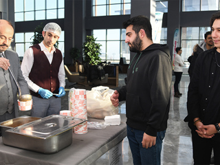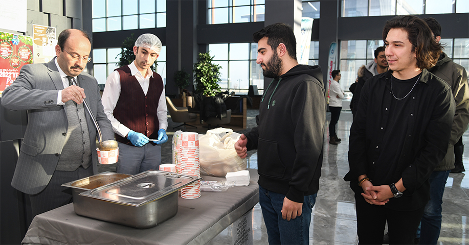 President Çakmak, who distributed free soup to encourage and support students who work late at the Central Library, which is open 24/7 during the final week, stated that the treat will continue until the end of the final week said: “Our students are working hard in our library to get through the final period in the best way possible. We want to start such an application for our students who work until late hours and make them feel at home a little bit."