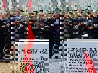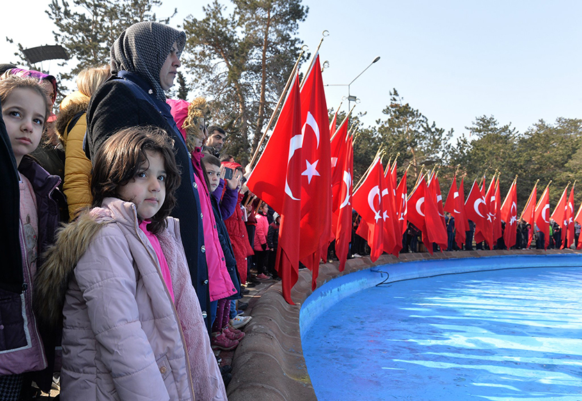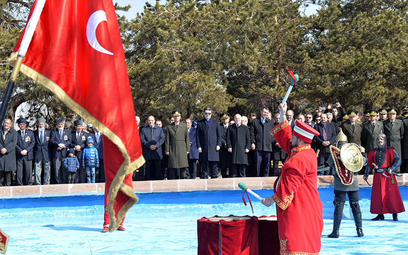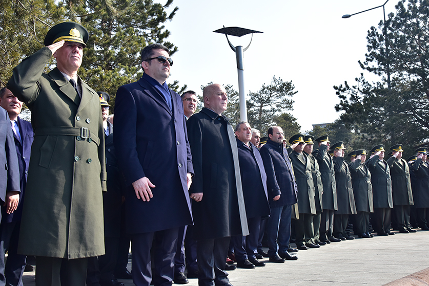 Çelenk bırakma töreninin ardından Büyükşehir Belediyesi Mehteran Takımı kısa bir gösteri sundu. Havuzbaşındaki törenin ardından Karskapı Şehitliğine geçildi. Burada okunan Kuran tilavetinin ardından Rektörümüz Prof. Dr. Bülent Çakmak şehitlerin kabirlerine karanfil bıraktı.
