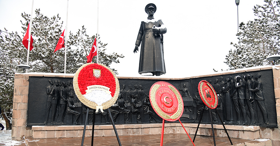 Havuzbaşı’ndaki Atatürk Anıtı önünde düzenlenen programa Erzurum Teknik Üniversitesi (ETÜ) Rektörü Prof. Dr. Bülent Çakmak’ın yanı sıra şehrin idari, askeri ve yargı erkanı ile çok sayıda vatandaş katıldı.