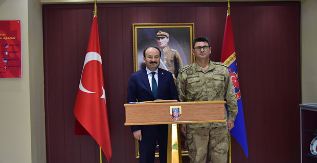 Erzurum'a atanarak görevlerine başlayan Tuğgeneral Semih OKYAR ve Kıdemli Albay Ali GEMALMAZ'ı ziyaret ederek hayırlı olsun dileklerini ileten Rektörümüz Prof. Dr. Bülent ÇAKMAK, Erzurum'a gelen komutanlara yeni görevlerinde başarılar diledi. Tuğgeneral Semih OKYAR ve Kıdemli Albay Ali GEMALMAZ ise Prof. Dr. Bülent ÇAKMAK’ın nazik ziyaretleri için kendilerine teşekkür ederek, tarih sayfalarında şanıyla anılan Dadaşlar Diyarı Erzurum’a atanması hasebiyle duyduğu sevinç ve gururu ifade etti. Erzurum’un, Türkiye Cumhuriyeti’nin kurulması aşamasında önemli bir rol üstlendiğini anımsatan Okyar Paşa, Kıdemli Albay Ali GEMALMAZ ile birlikte Erzurum’un tüm bölgelerinde güvenliğin başarıyla sağlanabilmesi için ellerinden geleni yapacaklarını söyledi.
