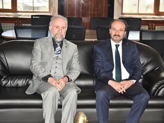 Erzurum İl Müftüsü Hasan Hüsnü SULA ile üniversite kampüsümüzde inşası devam eden camimiz hakkında görüşen Prof. Dr. ÇAKMAK sonrasında kampüsümüzün ağaçlandırma çalışmaları için Erzurum Orman Bölge Müdürü Şaban BIYIKLI ile makamında görüştü.
