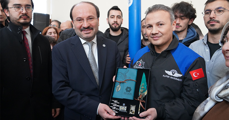 Mühendislik ve Mimarlık Fakültesi Konferans Salonu’nda düzenlenen etkinliğe Bakan Kacır ve Astronot Gezeravcının yanı sıra Erzurum Valisi Mustafa Çiftçi, Erzurum Büyükşehir Belediye Başkanı Mehmet Sekmen, ETÜ Rektörü Prof. Dr. Bülent Çakmak, protokol mensupları, akademisyenler ve çok sayıda öğrenci katıldı.