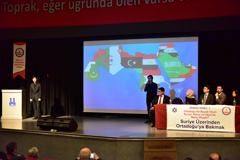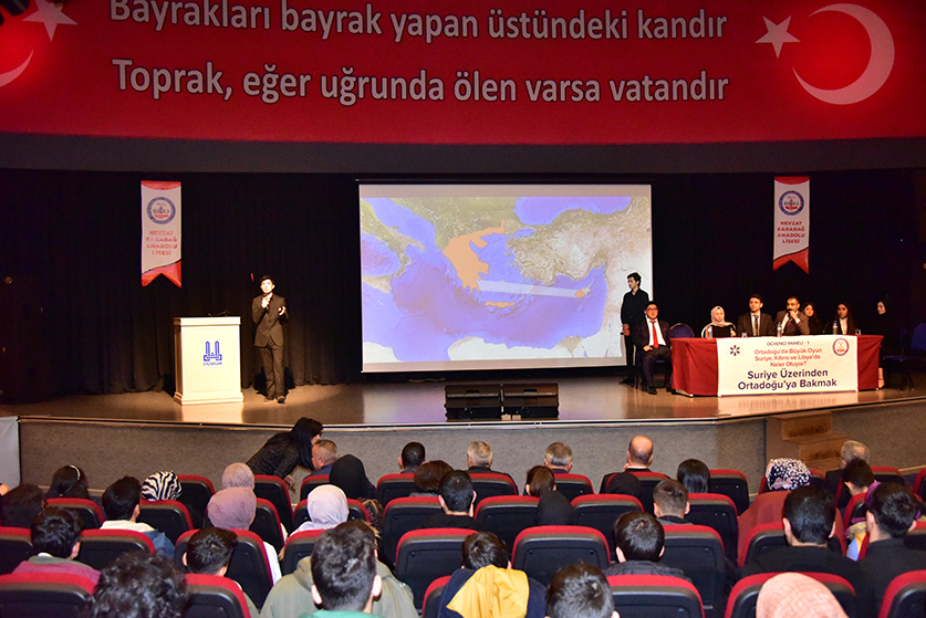 Erzurum Teknik Üniversitesi Tarih Bölümü Başkanı Doç. Dr. Naim ÜRKMEZ ve Erzurum Teknik Üniversitesi Edebiyat Fakültesi Dekan Yardımcısı Doç. Dr. Uğur AKBULUT ile Nevzat Karabağ Anadolu Lisesi Müdürü Vasip ELBİL, Tarih Öğretmenleri Zeki BİNGÖL ve Uz. Akın YAYIK’ın organize ettikleri öğrenci panelinin ilki 10 Mart 2020 tarihinde "Suriye Üzerinden Ortadoğu'ya Bakmak" başlığı altında Necip Fazıl Kısakürek Kültür Merkezinde yapıldı.