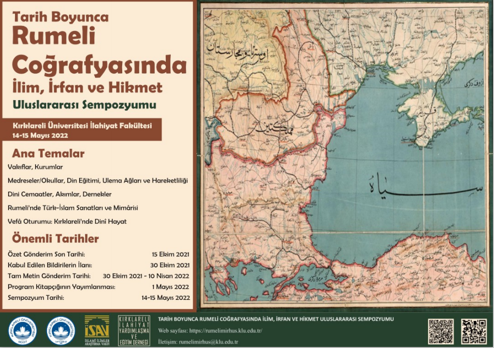 Kırklareli Üniversitesi İlahiyat Fakültesi tarafından 14-15 Mayıs 2022 tarihleri arasında düzenlenecek olan Tarih Boyunca Rumeli Coğrafyasında İlim, İrfan ve Hikmet Uluslararası Sempozyumu