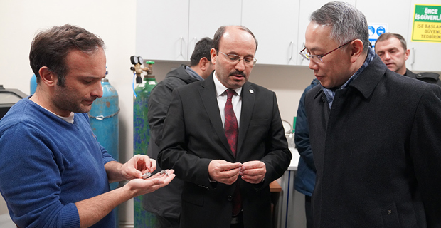 Rektörlükte yapılan görüşmenin ardından konuklarını ETÜ Yüksek Teknoloji Uygulama ve Araştırma Merkezi’ne (YÜTAM) götüren Rektör Çakmak, burada 2 boyutlu malzeme, görüntüleme sistemleri, eklemeli imalat ile bitki teknolojileri ve mikrobiyoloji laboratuvarında yapılan çalışmaları yerinde gösterdi.