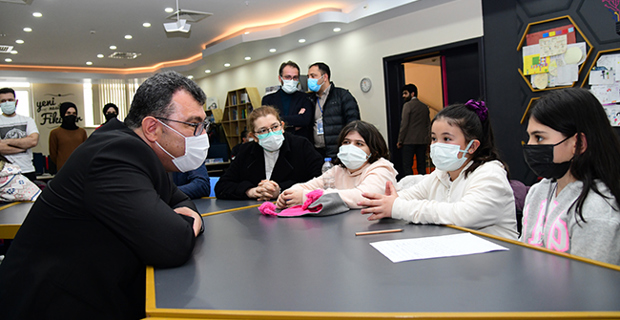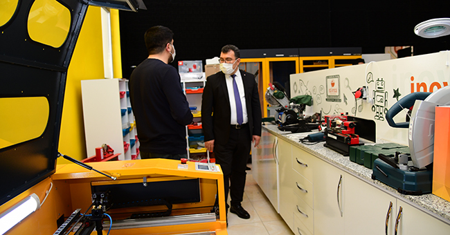 Festival Alanından ayrılan TÜBİTAK Başkanı Mandal, Erzurum temasları kapsamında Erzurum Büyükşehir Belediyesi Genel Sekreteri Zafer Aynalı ile birlikte ETÜ’ye gelerek Rektör Çakmak eşliğinde inovasyon merkezlerini ziyaret etti. Ahşap atölyesinden sanal gerçekliğe, robotik kodlamadan 3 boyutlu modellemeye kadar oldukça geniş bir yelpazede eğitim veren MUCİTPARK Bilim ve Fikir Atölyesinde incelemelerde bulunan Prof. Dr. Mandal, çocuklarla yakından ilgilenerek, Koordinatör Doç. Dr. Hüseyin Daştan’dan verilen eğitimler hakkında bilgi aldı.