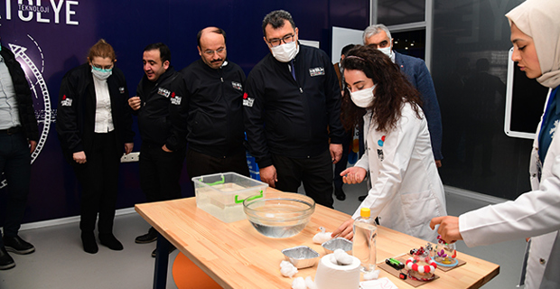 MUCİTPARK Bilim ve Fikir Atölyesinden ayrılan heyet, teknolojik iş fikirlerinin hayata geçirilmesine olanak sağlayan ETÜ Kristal Girişimcilik Merkezine geçerek Koordinatör Yardımcısı Arş. Gör. Gürkan Kalınay’dan son dönemde ticarileşerek üretim aşamasına geçen projeler ile TÜBİTAK’dan destek almaya hak kazanan projelere ilişkin bilgi aldı.