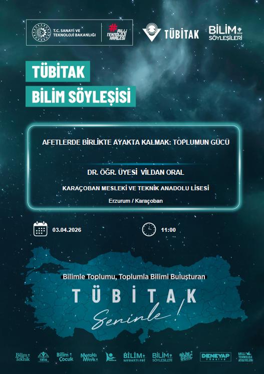 “Afetlerde Birlikte Ayakta Kalmak: Toplumun Gücü” başlıklı söyleşi, TÜBİTAK Bilim Söyleşileri kapsamında desteklenmeye hak kazanmıştır.