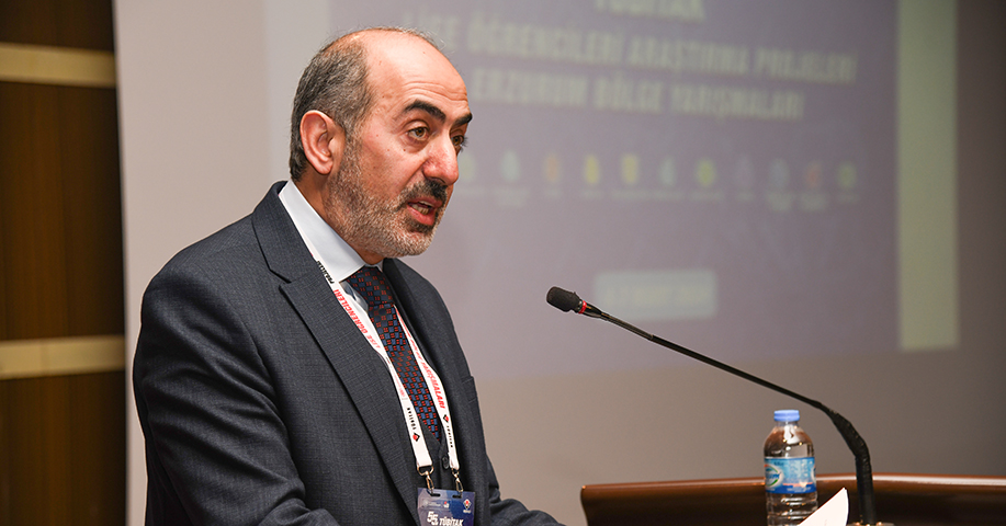 Programda konuşan TÜBİTAK Proje Yarışmaları Erzurum Bölge Koordinatörü Kaymaz, yarışmaya katılan tüm öğrencilerin Türkiye’nin bilim ve teknoloji alanında ilerlemesinin en önemli unsurlarından bir olduğunu vurgulayarak: “Bu ve benzeri yarışmalar çok önemli bir misyonu yerine getiriyorlar. Zira Türkiye'nin Bilim ve Teknoloji alanındaki yolculuğundaki en önemli gereksinim ne araştırma bütçesi, ne yüksek teknolojiye sahip laboratuvarlar, ne de bunları içerecek devasa binalardır. Bunların hepsi bir şekilde elde edilir, yapılır. Ancak temin edilmesi bunlardan daha zor ve çok daha önemli olan ise araştırma aşkıyla, merak ettiği konuların peşinden heyecanla koşan, gözleri pırıl pırıl parlayan gençlere sahip olmaktır. Yani sizlere. Bu salonu dolduran ve değerlendirme jürilerimizi heyecanları ile büyüleyen çok kıymetli öğrencilere sahip olmak bu ülkenin en büyük servetidir. İşte siz değerli gençleri ortaya çıkararak ülkenin araştırma gücüne katmak için bu tür yarışmalar bir kilometre taşı vazifesi görmektedir. İşte bu nedenle sergilenen projelerin her biri birbirinden kıymetli ve ülkemizin teknoloji hamlesine katkı yapacak nitelikte projelerdir. Bu projelerin sahipleri olan siz değerli öğrencilerimizi kutluyorum. Bu süreçte ETÜ’nün tüm imkanlarını bizlere sunan Rektörümüz Prof. Dr. Bülent Çakmak’a ve bizlere bu salonu tahsis eden Atatürk Üniversitesi Rektörü Prof. Dr. Ömer Çomaklı’ya teşekkür ediyorum” diye konuştu.