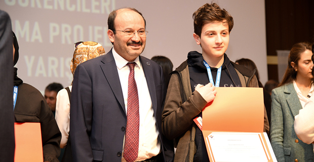 Kaymaz’ın ardından kürsüye çıkan Rektör Çakmak ise yarışmaya katılan tüm öğrencileri tebrik ederek: “Burada 103 proje yarıştı, her grup birçok sunum yaptı, heyecan ve stres yaşadınız. Ama bu yaşadıklarınız size çok kıymetli birikimler, tecrübeler ve donanımlar olarak geri dönecektir. Üniversitemizden mezun olan öğrencilerimizle sohbet ettiğimiz zaman iş başvuru süreçlerinde kendilerinden istenilen en önemli kriterden birinin takım çalışmasına yatkınlık olduğunu duyuyoruz. Siz henüz lise çağında takım çalışmasına yatkın olduğunuzu ortak çalışma kültürüne sahip olduğunuzu kanıtladınız. Burada sadece dereceye giren öğrencilerimiz değil bütün öğrencilerimiz kazandı. Bu vesileyle her birinizi bir kez daha tebrik ediyor ve organizasyonun gerçekleştirilmesinde emeği geçen tüm hocalarımıza teşekkür ediyorum” ifadelerini kullandı.