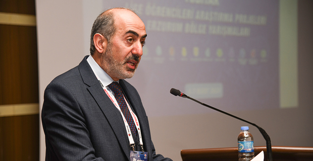 Programda konuşan TÜBİTAK Proje Yarışmaları Erzurum Bölge Koordinatörü Kaymaz, yarışmaya katılan tüm öğrencilerin Türkiye’nin bilim ve teknoloji alanında ilerlemesinin en önemli unsurlarından bir olduğunu vurgulayarak: “Bu ve benzeri yarışmalar çok önemli bir misyonu yerine getiriyorlar. Zira Türkiye'nin Bilim ve Teknoloji alanındaki yolculuğundaki en önemli gereksinim ne araştırma bütçesi, ne yüksek teknolojiye sahip laboratuvarlar, ne de bunları içerecek devasa binalardır. Bunların hepsi bir şekilde elde edilir, yapılır. Ancak temin edilmesi bunlardan daha zor ve çok daha önemli olan ise araştırma aşkıyla, merak ettiği konuların peşinden heyecanla koşan, gözleri pırıl pırıl parlayan gençlere sahip olmaktır. Yani sizlere. Bu salonu dolduran ve değerlendirme jürilerimizi heyecanları ile büyüleyen çok kıymetli öğrencilere sahip olmak bu ülkenin en büyük servetidir. İşte siz değerli gençleri ortaya çıkararak ülkenin araştırma gücüne katmak için bu tür yarışmalar bir kilometre taşı vazifesi görmektedir. İşte bu nedenle sergilenen projelerin her biri birbirinden kıymetli ve ülkemizin teknoloji hamlesine katkı yapacak nitelikte projelerdir. Bu projelerin sahipleri olan siz değerli öğrencilerimizi kutluyorum. Bu süreçte ETÜ’nün tüm imkanlarını bizlere sunan Rektörümüz Prof. Dr. Bülent Çakmak’a ve bizlere bu salonu tahsis eden Atatürk Üniversitesi Rektörü Prof. Dr. Ömer Çomaklı’ya teşekkür ediyorum” diye konuştu.