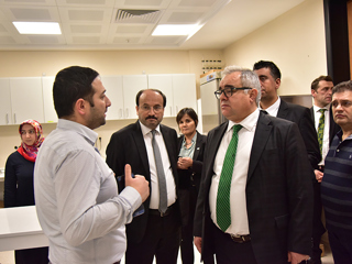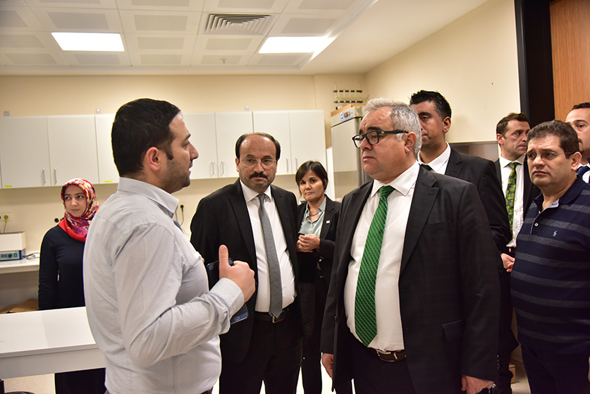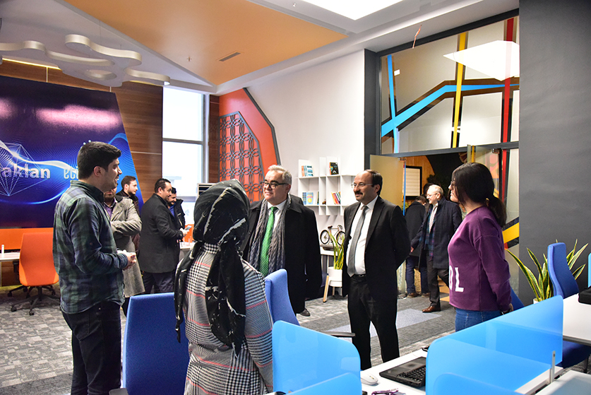 Sonrasında Üniversitemize geçen heyet, Üniversitemiz ve TUSAŞ arasında eğitim, öğretim, araştırmaya ilişkin iş birliği koşullarını düzenleyen, lisansüstü eğitime yönelik ortak tez ve proje çalışmalarını gerçekleştiren TUSAŞ’ın laboratuvar ve teçhizat alt yapısı ile tesislerini kullanmayı ön gören protokol imzalandı. Ardından Rektörümüz Prof. Dr. Bülent ÇAKMAK, konuklarına temiz odaları alt yapı imkanlarına sahip üretim laboratuvarlarıyla Yüksek Teknoloji ve Araştırma Merkezi'ni, 7'den 70'e teknoloji odaklı fikirlerin geliştirildiği bir ön kuluçka merkezi olan ETÜ Kristal’i, bilim ve fikir atölyesi olan robotik kodlamadan sosyal inovasyon anlamında eğitim veren Mucitpark'ı gezdirdi.
