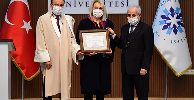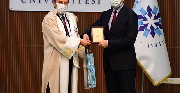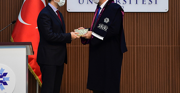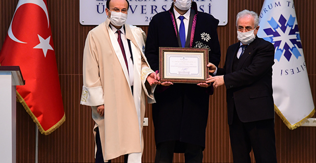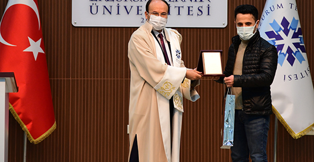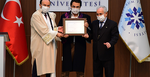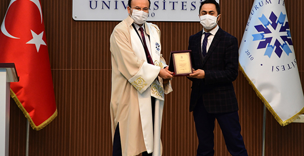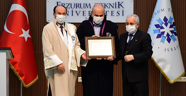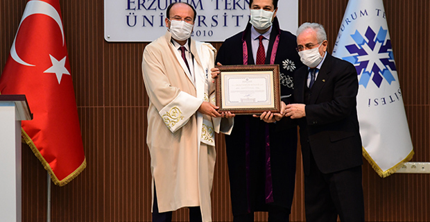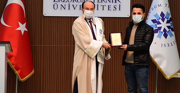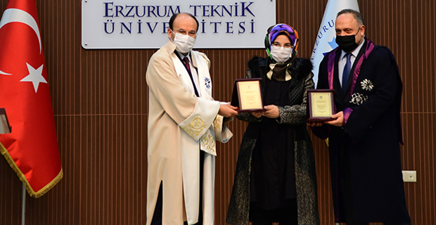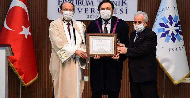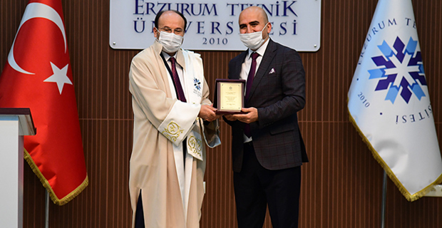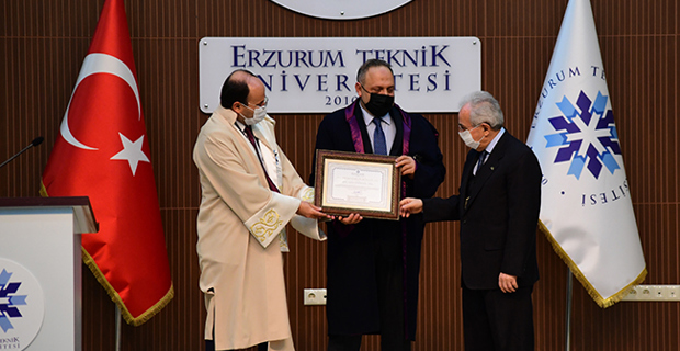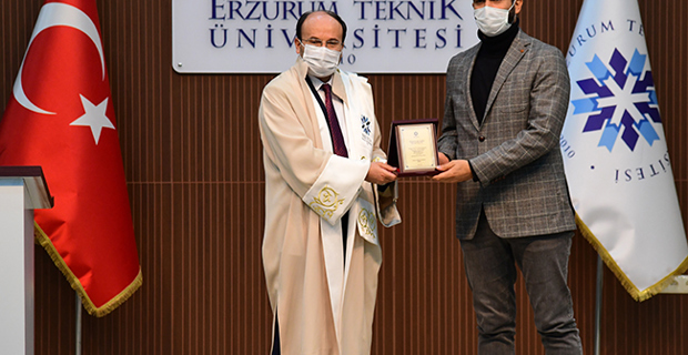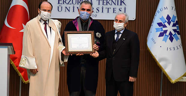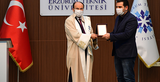 Erzurum Teknik Üniversitesi ailesi olarak Rektörümüz Prof. Dr. Bülent Çakmak, Kurucu Rektörümüz Prof. Dr. Muammer Yaylalı, Rektör Yardımcılarımız, Dekanlarımız, üniversitemiz akademik ve idari personelinin iştirak ettikleri, “Erzurum Teknik Üniversitesi Akademik Giysi ve Ödül Töreni” 16.12.2020 tarihinde gerçekleştirildi. Pandemi süreci sebebiyle alınan resmi tedbirler doğrultusunda törenimiz sınırlı sayıda katılımcıyla gerçekleştirildi. Erzurum Teknik Üniversitesi Youtube kanalından canlı olarak yayınlanan törenimiz, Neyzen Ahmet Yusuf Alptekin Beyefendi’nin Ney Dinletisi ile başladı ve akabinde Rektörümüz Prof. Dr. Bülent Çakmak açılış konuşmasını yaptı. Ardından Rektörlük Yüksek Onur Ödülü’ne layık görülen Kurucu Rektörümüz ve YÖK üyesi Prof. Dr. Muammer Yaylalı hocamız kısa bir konuşma yaptı. Bu konuşmaların akabinde Profesörlük unvanını alan Erzurum Teknik Üniversitesi akademik personelinin cübbe giyme ve Profesörlük Belgesi takdim merasimine geçildi. Bu kapsamda,