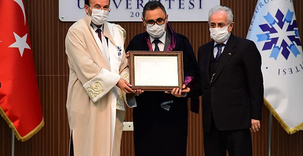 Prof. Dr. Yusuf Ziya Sümbüllü’ye cübbeleri giydirilerek Profesörlük Belgeleri takdim edildi. Prof. Dr. Hasan Türkez, bir panel görevi olduğundan törenimize iştirak edememiştir.