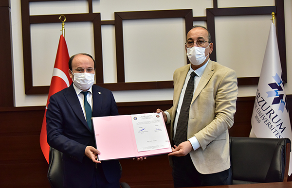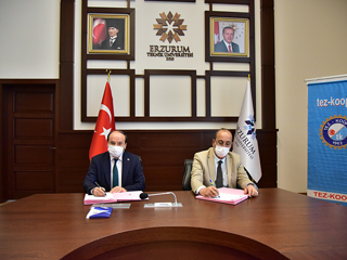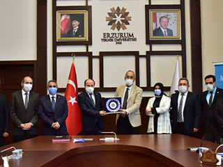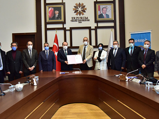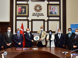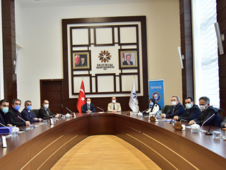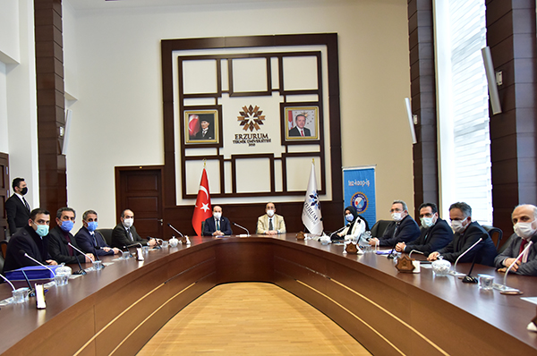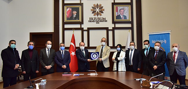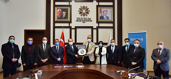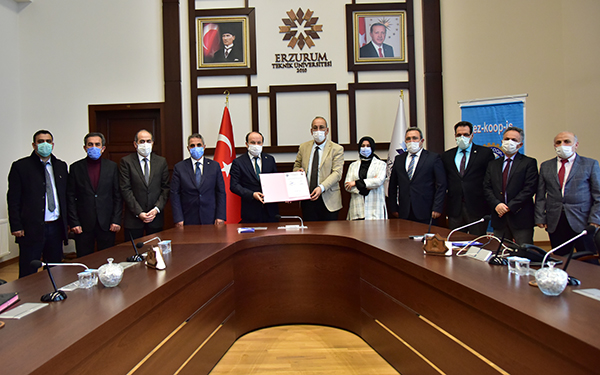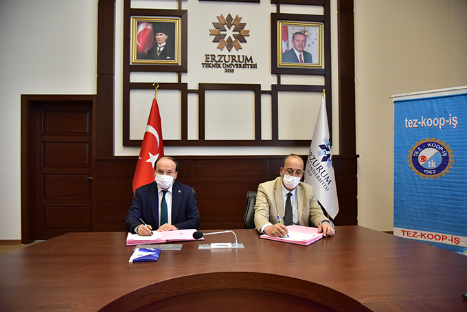 Our Rector Prof. Dr. Bülent ÇAKMAK, Vice Rector Prof. Dr. İrfan KAYMAZ, Our Secretary General Assoc. Dr. Tuba YETİM, Head of Personnel Department Abdulmütalip ÇETİN, Head of Administrative and Financial Affairs Mahmut DİLBER, Head of Strategy Development Department Süleyman KARA, Legal Advisor Gamze KARADAĞ KÜÇÜK, Branch Manager Hasan AĞIRMAN, Thesis-Coop-Work Union General Secretary Hakan BOZKURT, Tez-Coop-Work Union Erzurum Branch President Hakan KURT, Tez-Coop-Work Union Erzurum Branch Administrative Secretary Turgut POLAT, Erzurum Technical University Chief Representative Mehmet Zeki KACUR and authorized union members joined the signing ceremony held in the Senate Meeting Room.