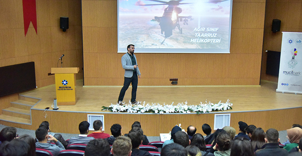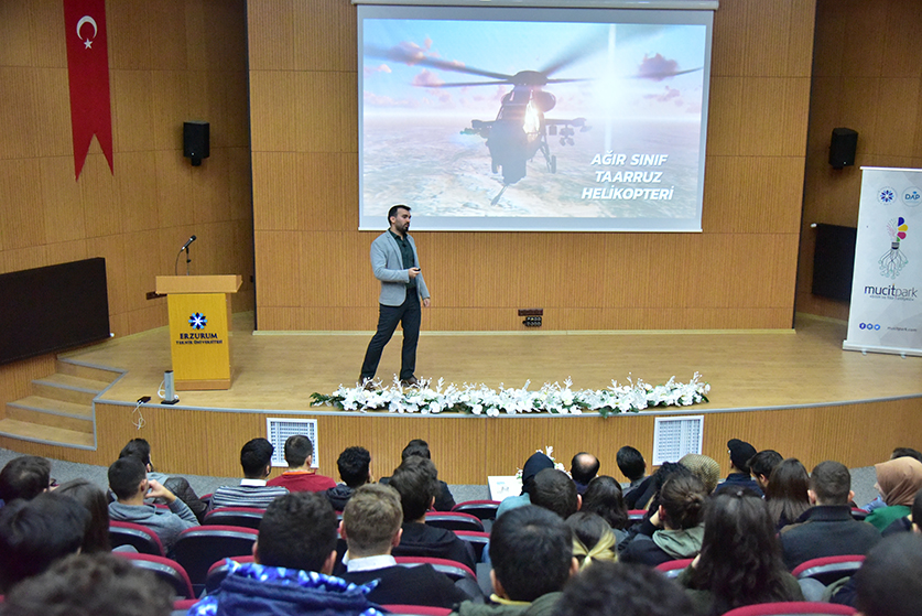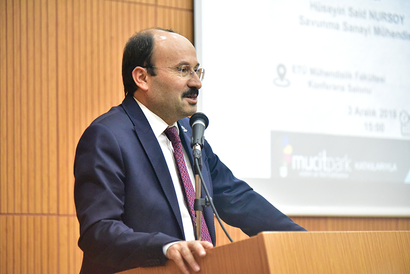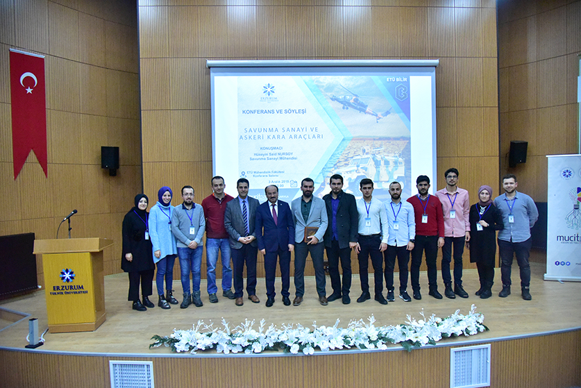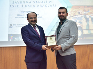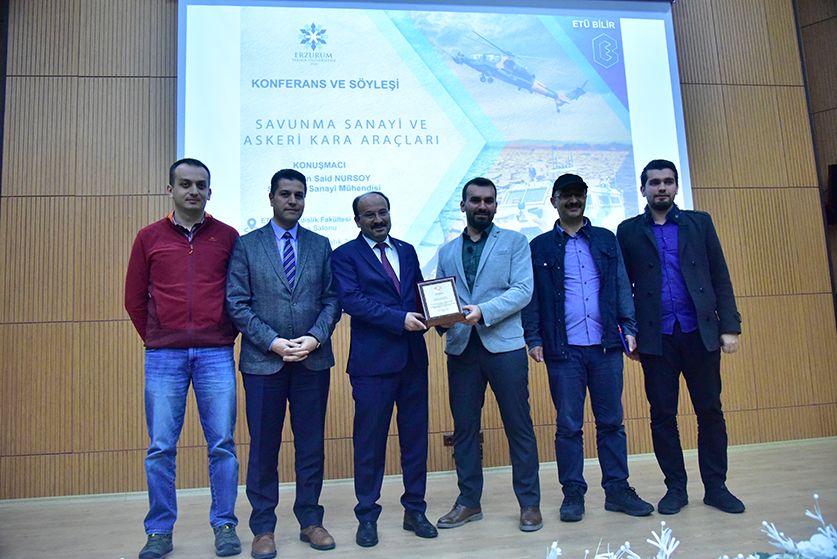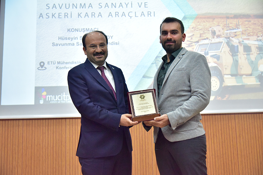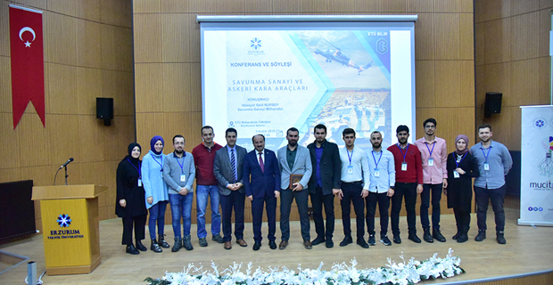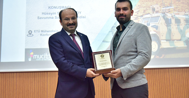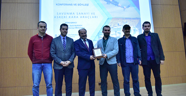 Üniversitemiz Bilim ve Fikir Topluluğu'nun düzenlediği Mucitparkın sponsor olduğu "Savunma Sanayi ve Askeri Kara Araçları" konulu konferans ve söyleşi Mühendislik ve Mimarlık Fakültesi konferans salonunda düzenlendi. Rektörümüz Prof. Dr. Bülent ÇAKMAK'ın açılış konuşmasının ardından davetli olarak katılan savunma sanayi mühendisi Hüseyin Said NURSOY, "Savunma Sanayi ve Askeri Kara Araçları" hakkında bilgiler verdi. Askeri araçların temel yapılarından, hava sistemlerinden ve deniz sistemlerinden bahsedildi. Sunumun sonunda öğrencilere kariyer ve savunma sanayi hakkında bilgiler verildi. Soru ve cevap bölümün ardından söyleşi Rektörümüz Prof. Dr. Bülent ÇAKMAK'ın savunma sanayi mühendisi Hüseyin Said NURSOY'a plaket takdimiyle son buldu.