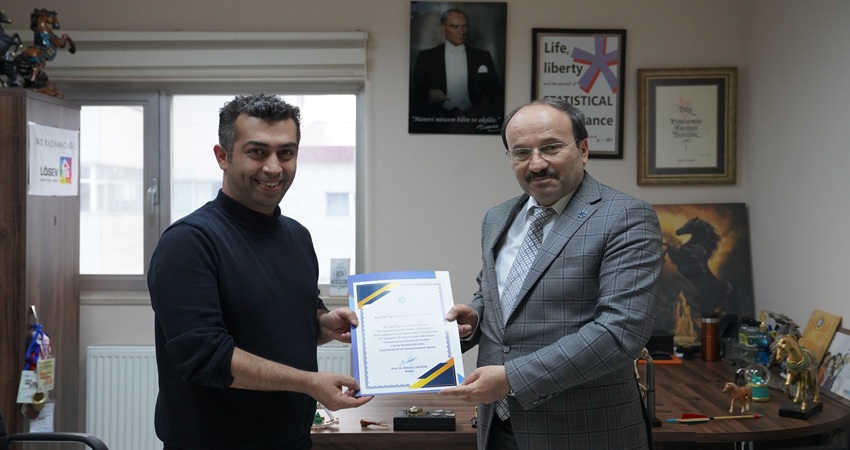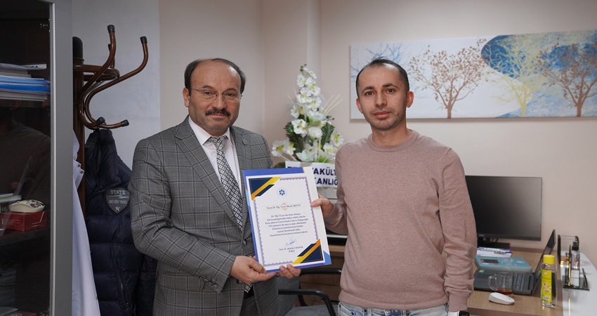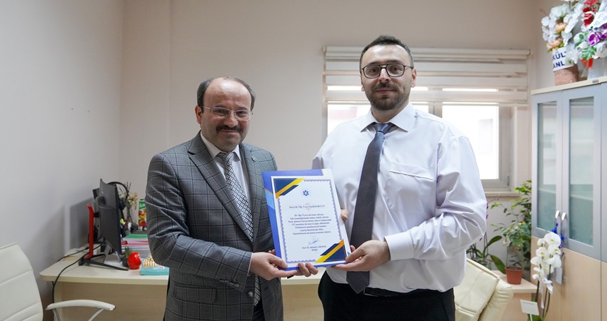 Üniversitemiz Rektörü Prof. Dr. Bülent ÇAKMAK, Fakültemizde Dr. Öğretim Üyesi ünvanı alan öğretim üyelerimizi ziyaret ederek belge takdim etti.