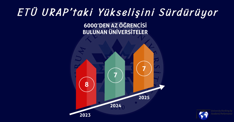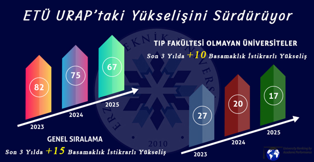 Erzurum Teknik Üniversitesi (ETÜ), University Ranking by Academic Performance (URAP) 2025–2026 Türkiye sıralamalarında genel ve alt kategorilerde elde ettiği derecelerle istikrarlı yükselişini sürdürdü.