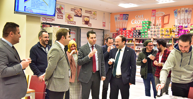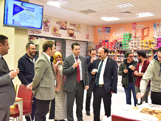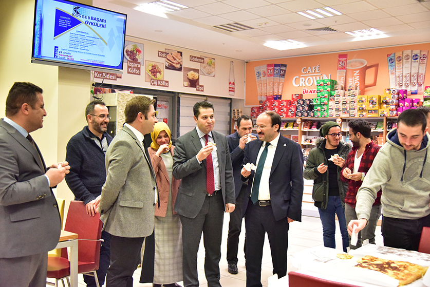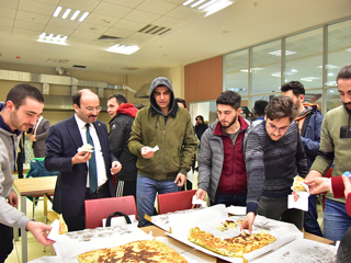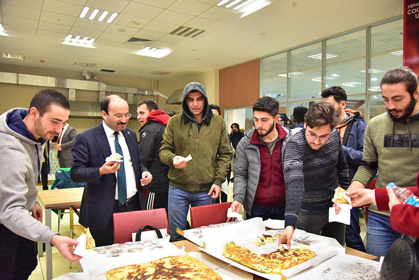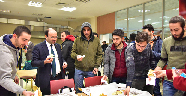 Teşekkür belgesi ve hatıra fotoğraflarının çekilmesinin ardından Program sonunda Rektörümüz Prof. Dr. Bülent ÇAKMAK ve Anadolu Börek işletme sahibi Serkan AKKÖSE eşliğinde öğrencilerimize börek ikram edildi.
