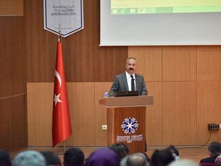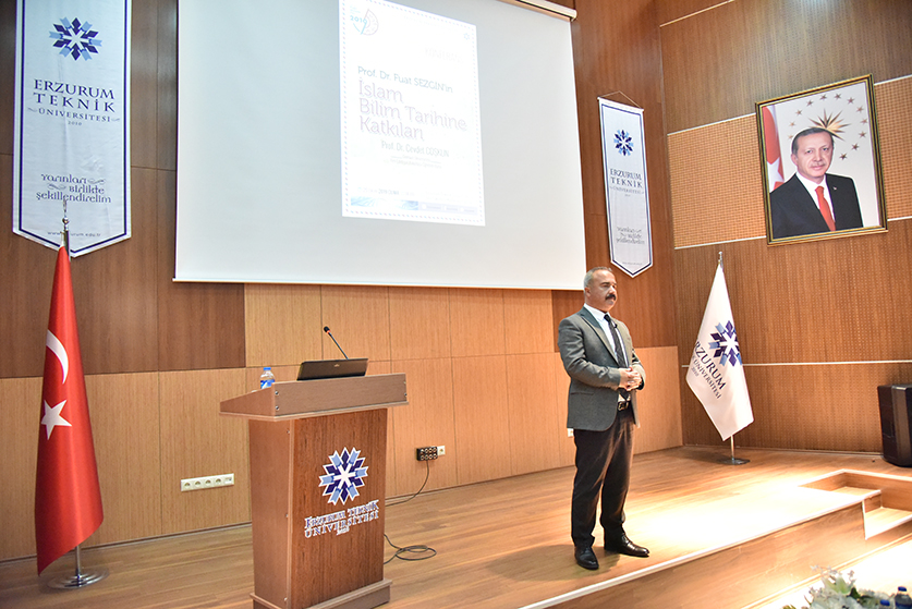 Our Science Faculty held a conference for 2019 Fuat Sezgin Year. Giresun University Faculty of Arts and Sciences Faculty Member. Dr. Cevdet COŞKUN participated as a speaker at the conference. In his speech, Prof. Dr. Coşkun mentioned Dr. Prof. Dr. Fuat SEZGİN's contribution to the History of Islamic Science and stated that Prof. Dr. Sezgin showed that Turkish civilization could be reestablished and said: "Eastern scientists in which Fuat Sezgin participated have demonstrated that we are rich in terms of scientific and philosophical thought. This psychology was provided by showing that we can reestablish our own civilization.When we read about his life, we see that he led an excellent life which can affect everone. In his own words, he said, 'I have dedicated my life to defeating the inferiority complex that has infused the people of this land to the bone’.The conference ended with the presentation of gifts to Cevdet COŞKUN by Vice Rector Dr. Prof. Murat KÜÇÜKUĞURLU.