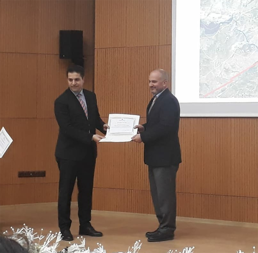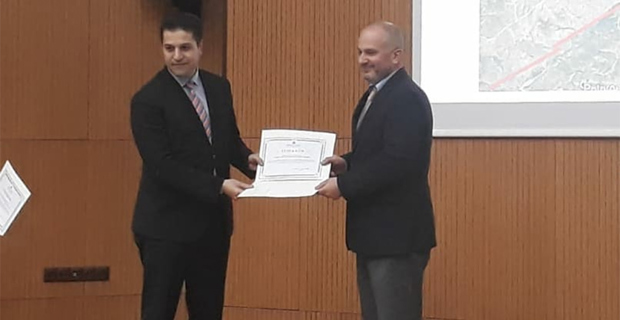 Konferans sonunda Mühendislik ve Mimarlık Fakültesi Dekanı Prof. Dr. Fatih YETİM, Prof. Dr. İlker KAZAZ ve Dr. Öğr. Üyesi Dilek OKUYUCU sunumlarında dolayı teşekkür ederek belge takdim etti.