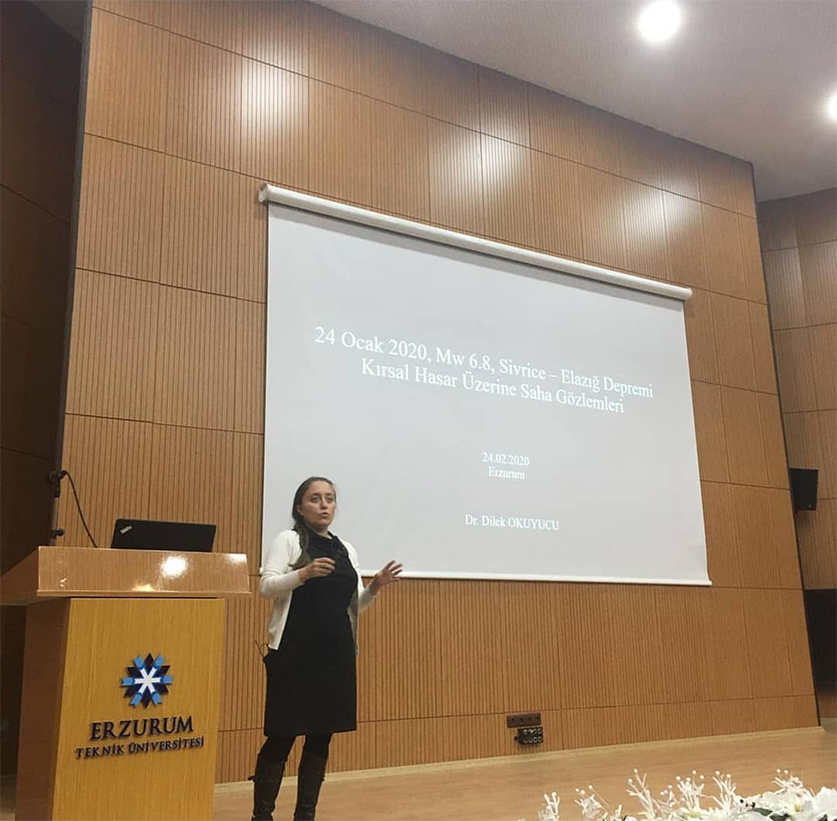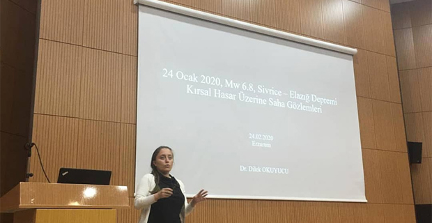 Erzurum Teknik Üniversitesi öğretim üyelerinden Prof. Dr. İlker KAZAZ ve Dr. Öğr. Üyesi Dilek OKUYUCU, 24 Ocak 2020 tarihinde meydana gelen Mw=6.8 büyüklüğündeki Sivrice (Elazığ) Depremi ardından deprem bölgesine giderek yaptıkları saha çalışmaları ve gözlemler ışığında depreme dayanıklı yapı tasarımı ilkelerinin irdelenmesi konulu bir seminer verdiler.