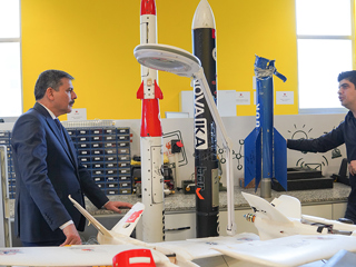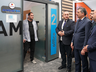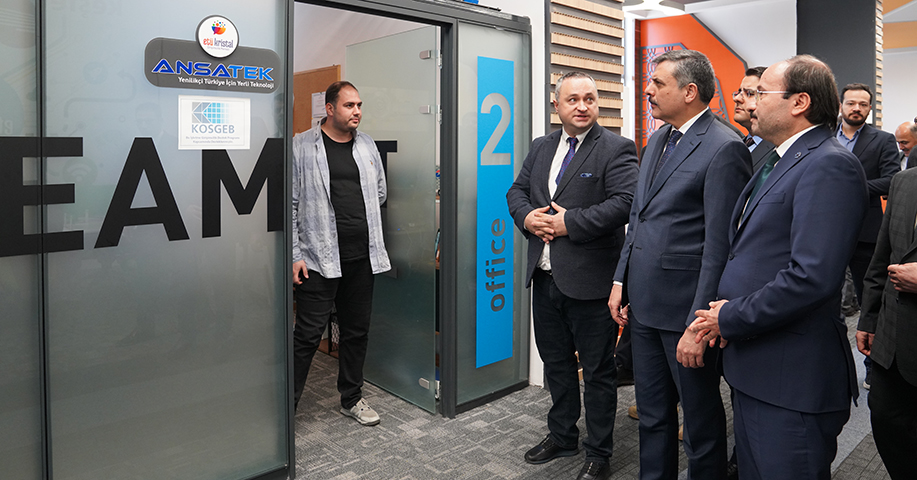 Rektör Çakmak’ın bir süre Vali Çiftçi ve beraberindeki heyete yürütülen çalışmalar hakkında bilgi vermesinin ardından Kristal Girişimcilik Merkezi Koordinatör Yardımcısı Arş. Gör. Gürkan Kalınay, merkezin girişimcilere sunmuş olduğu destekler, çalışma alanları ve atölye olanakları ile ticarileşerek üretime başlayan projeler hakkında bilgi verdi.