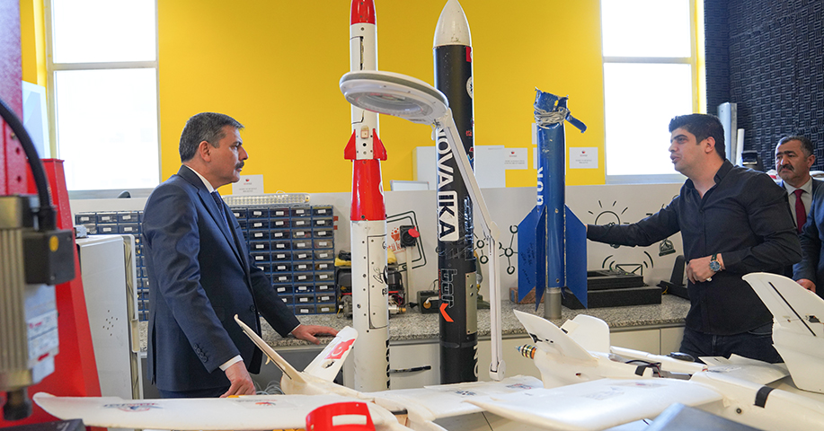 Erzurum Valisi Mustafa Çiftçi Rektör Prof. Dr. Bülent Çakmak ile birlikte Erzurum Teknik Üniversitesi ‘nin (ETÜ) inovasyon merkezlerinden olan Kristal Girişimcilik Merkezi’nde incelemelerde bulundu.