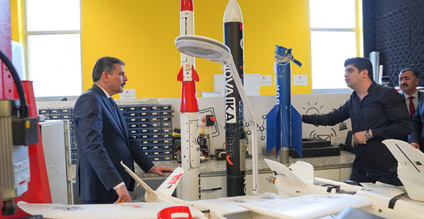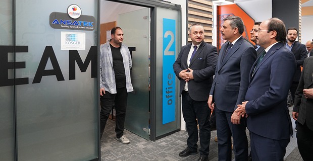 After Rector Çakmak provided information about the ongoing work to Governor Çiftçi and his accompanying delegation, Assistant Coordinator of the Crystal Entrepreneurship Center, Research Assistant Gürkan Kalınay, provided information about the support offered by the center to entrepreneurs, working areas, workshop facilities, and projects that have started production through commercialization.