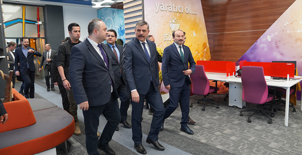 Erzurum Governor Çiftçi visited ETÜ to get information about the activities carried out by the Kristal Entrepreneurship Center and to meet with the entrepreneurs who receive free mentoring support within the center. The visit was attended by the Governor, the Director of Erzurum Provincial National Education, the Director of Erzurum Science Industry and Technology, and the Secretary General of the Northeast Anatolia Development Agency.