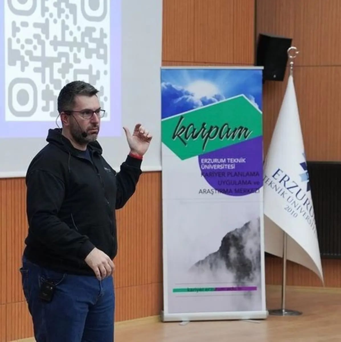 Erzurum Teknik Üniversitesi Kariyer Planlama Uygulama ve Araştırma Merkezi olarak ETÜ Kariyer Kulübü ile birlikte düzenlediğimiz "Yazılım Sektöründe Kariyer Yolculuğu NOSQL Veritabanları ve Bulut Bilişim Uygulamaları" adlı teknik seminerimize, Sayın Microsoft Mühendisi @daronyondem 'in değerli katılımı için teşekkür ederiz. Bilgi dolu anlar ve ilham veren paylaşımlarıyla etkileyici bir deneyim yaşattı.