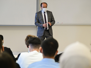 Yüz yüze yapılan ilk derste Elektrik Elektronik Mühendisliği Bölümü öğrencileriyle sınıf ortamında bir araya gelen Rektör Bülent Çakmak: “Bir buçuk yıldır uzaktan eğitim modeliyle yürüttüğümüz eğitim öğretim faaliyetlerini uzun zamandır özlemini çektiğimiz yüz üze eğitime taşımanın mutluğu içerisindeyiz. Ancak geçirdiğimiz bu süreç bize gösterdi ki; artık dijital eğitim hayatımızın ayrılmaz bir parçası olacak. Biz de üniversite senatosu olarak yeni akademik yılda öğrencilerimizin verimli ve güvenli şekilde eğitim öğretim sürecini geçirebilmesi için Yükseköğretim Kurulu’nun (YÖK) tavsiyesi üzerine derslerin yüzde 40’ının online yüzde 60’ının ise yüz yüze yapılmasını kararlaştırdık” dedi.