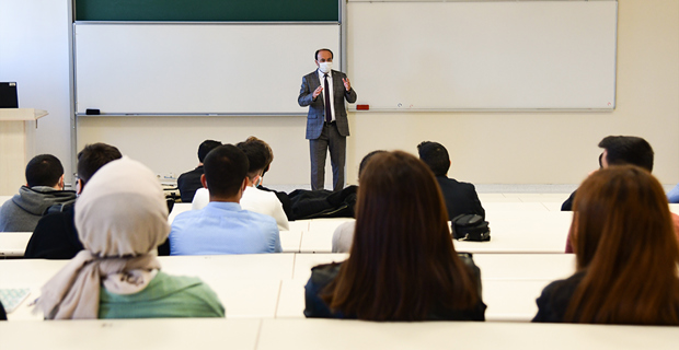Yüz yüze yapılan ilk derste Elektrik Elektronik Mühendisliği Bölümü öğrencileriyle sınıf ortamında bir araya gelen Rektör Bülent Çakmak: “Bir buçuk yıldır uzaktan eğitim modeliyle yürüttüğümüz eğitim öğretim faaliyetlerini uzun zamandır özlemini çektiğimiz yüz üze eğitime taşımanın mutluğu içerisindeyiz. Ancak geçirdiğimiz bu süreç bize gösterdi ki; artık dijital eğitim hayatımızın ayrılmaz bir parçası olacak. Biz de üniversite senatosu olarak yeni akademik yılda öğrencilerimizin verimli ve güvenli şekilde eğitim öğretim sürecini geçirebilmesi için Yükseköğretim Kurulu’nun (YÖK) tavsiyesi üzerine derslerin yüzde 40’ının online yüzde 60’ının ise yüz yüze yapılmasını kararlaştırdık” dedi.